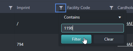 - If the credential you wish to edit does not appear in the list you can click on one of the filter icons - for example, you can search for the specific card by entering the imprint (this is the number that is printed on the credential).