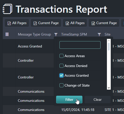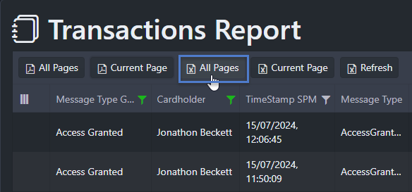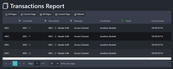 - The transaction reports screen now only displays access granted events from the specific cardholder.