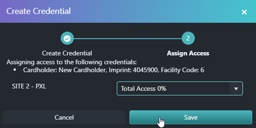 - Finally, click the Save button. The new credential will be sent out to the online access control hardware.